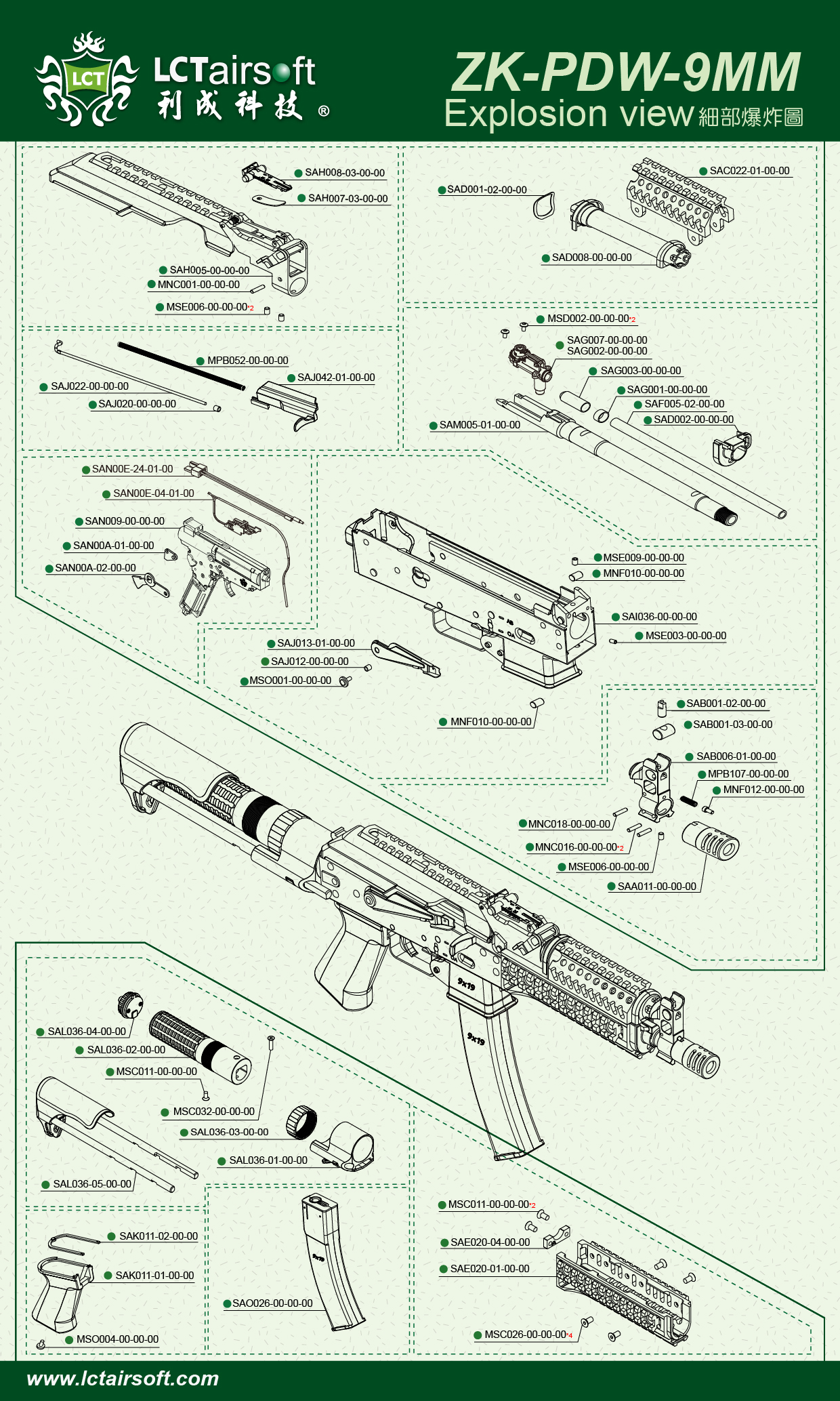 AZG005-00-00-00 ZK-PDW-9MM AEG Explosion view