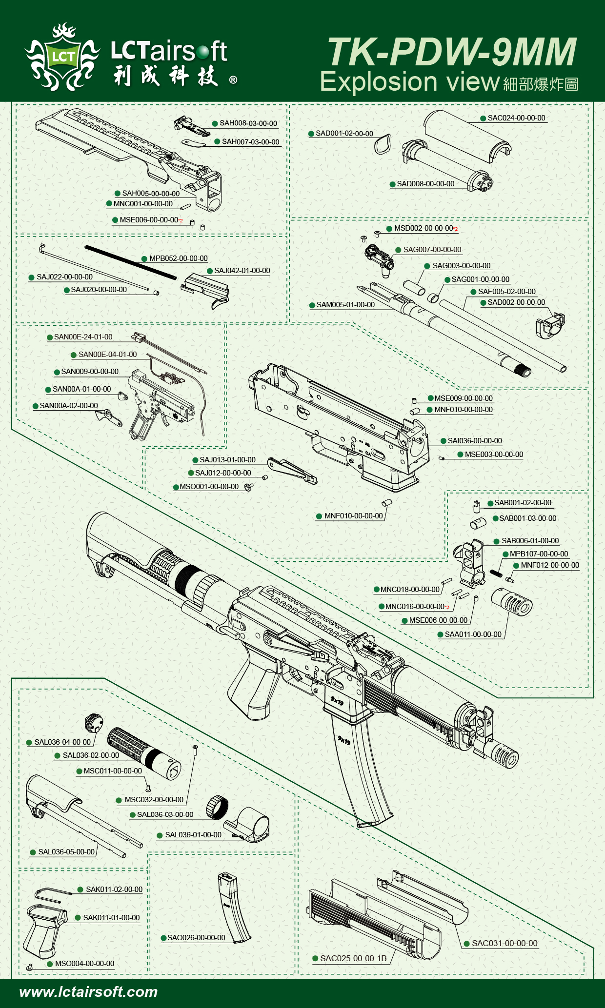 AAG058-00-00-00 TK-PDW-9MM AEG Explosion view